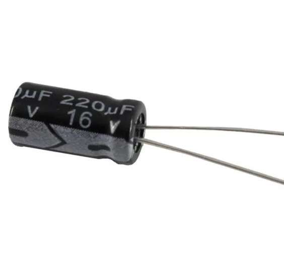 اين نوع خازنها ( خازن الکترولیتی 220 میکرو فاراد 16ولت – DIP ) 220UF/16V معمولاً در رنج ميکرو فاراد هستند. خازنهاي الکتروليتي كه مشابه خازنهاي ثابت هستند اما تفاوت آنها اين است كه اندازه و ظرفيتشان از خازنهاي ثابت بزرگتر می باشد.