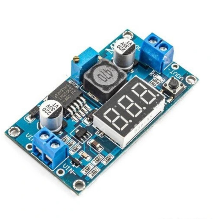 ماژول تغذیه LM2596 در واقع یک منبع تغذیه کامل با نمایشگر ولتاژ و تنظیم ولتاژ خروجی بوده که ولتاژ ورودی یا خروجی را می توان با فشردن یک کلید بر روی سون سگمنت مشاهده کرد.