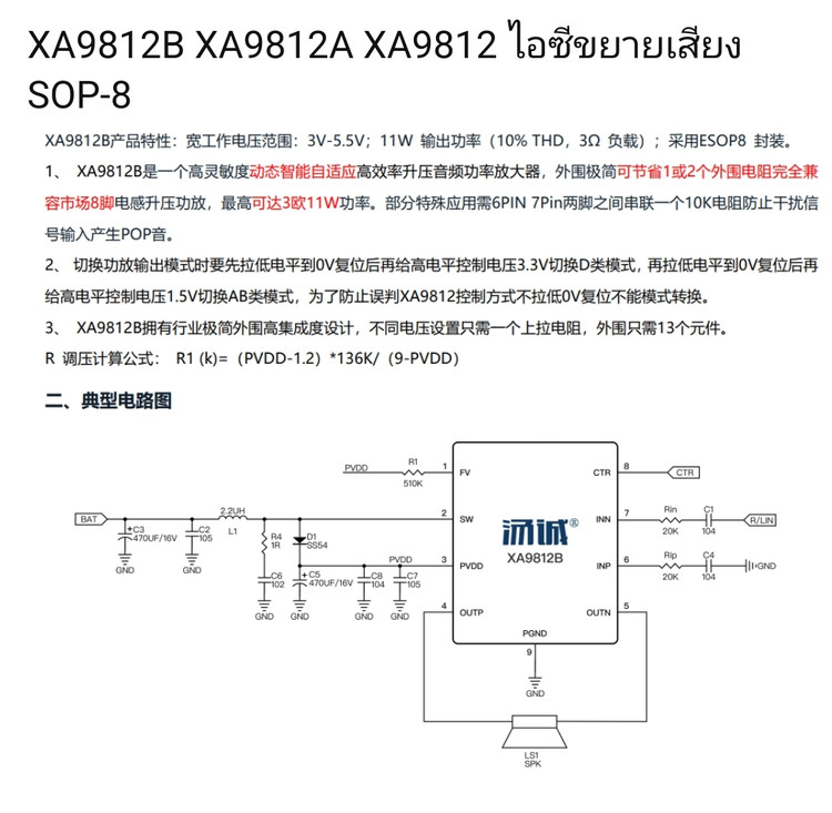 این آی سی در باندهای بلوتوثی وات بالا و بزرگ استفاده شده و قدرت خروجی بسیار عالی برای ساخت آمپلی فایر های کوچک و کم مصرف می باشد